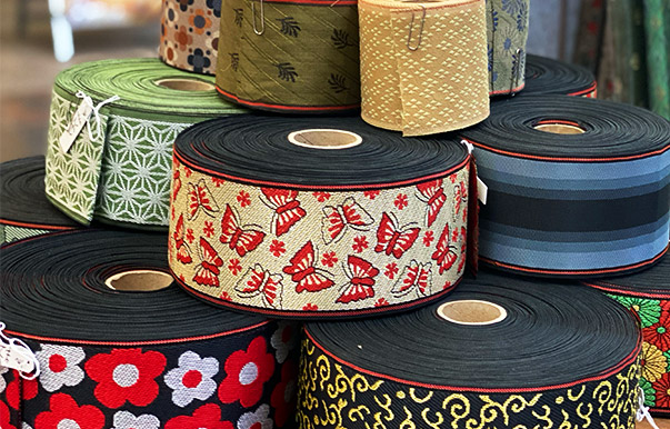 和柄、洋柄、シンプルな色調から絢爛豪華な色調・柄等の豊富な種類の『畳の縁』『置き畳』、小物や花瓶またはフィギュアやグッズの土台に合う『ミニ畳』、畳の縁のしっかりした素材を利用したリボン・ボタン等小物、天然イ草や和紙を使った季節の催事物etc...